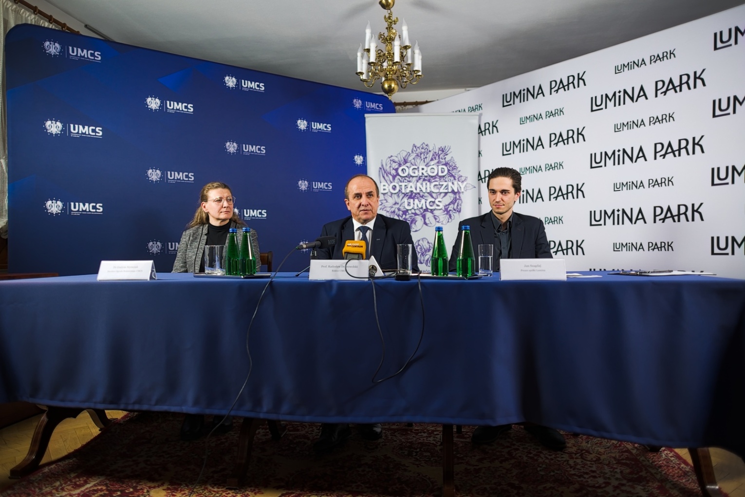 Oficjalne otwarcie Parku Iluminacji poprzedziła konferencja prasowa z udziałem JM Rektora, prof. Radosława Dobrowolskiego, dyrektora Ogrodu – dr Grażyny Szymczak i prezesa spółki Lumina – Jana Szagdaja. Briefing odbył się w Dworku Kościuszków na terenie "Botanika".