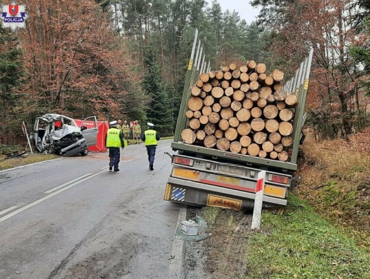 Do wypadku doszło wczoraj około godziny 10:00 w Zwierzyńcu na ulicy Biłgorajskiej (trasa Zwierzyniec - Panasówka, droga wojewódzka numer 858). Ze wstępnych ustaleń pracujących tam policjantów wynika, że kierująca busem marki Volkswagen Transporter jechała od strony Biłgoraja w kierunku Zwierzyńca. Na łuku drogi straciła panowanie nad pojazdem i czołowo zderzyła się z jadącym z naprzeciwka przystosowanym do przewozu drewna samochodem ciężarowym marki Volvo z przyczepą. Siła uderzenia zepchnęła busa do przydrożnego rowu. Częściowo do rowu zjechał także kierujący ciężarówką.
