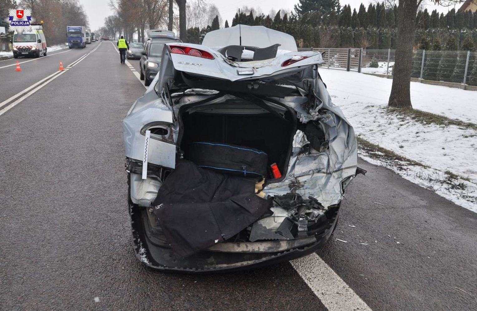 Krasnostawscy policjanci wyjaśniają dokładne przyczyny zdarzenia drogowego, do którego doszło dziś około godziny 9:20 w Wólce Orłowskiej (gm. Izbica). Jak ustalili na miejscu funkcjonariusze, na prostym odcinku drogi krajowej DK-17, doszło do zderzenia trzech pojazdów, w tym dwóch ciężarowych i osobowego Seata. Wszyscy jechali w tym samym kierunku.