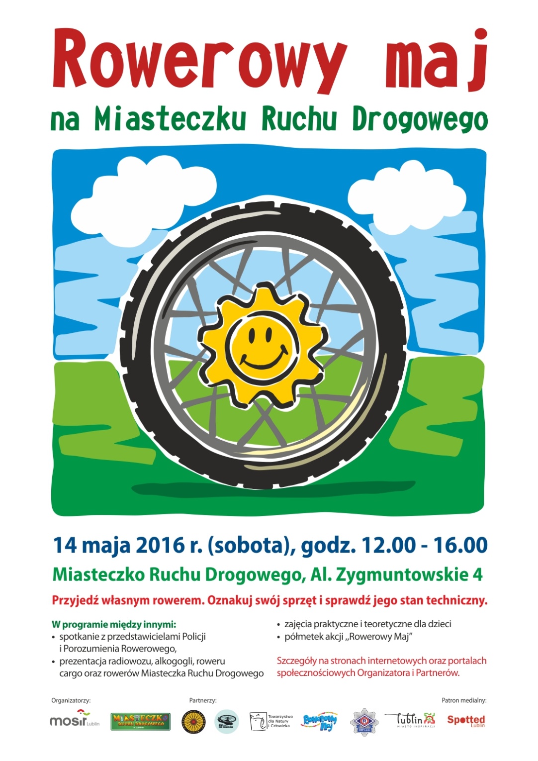 MOSiR ,,Bystrzyca" w Lublinie, Miasteczko Ruchu Drogowego oraz Partnerzy wydarzenia zapraszają wszystkich entuzjastów dwóch kółek na ,,Rowerowy maj na Miasteczku Ruchu Drogowego".