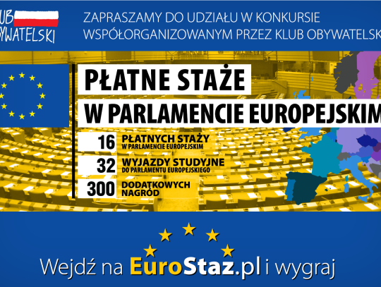 16 płatnych staży w Parlamencie Europejskim, 32 wyjazdy studyjne i 300 dodatkowych nagród czeka na laureatów kolejnej edycji Eurostażu!