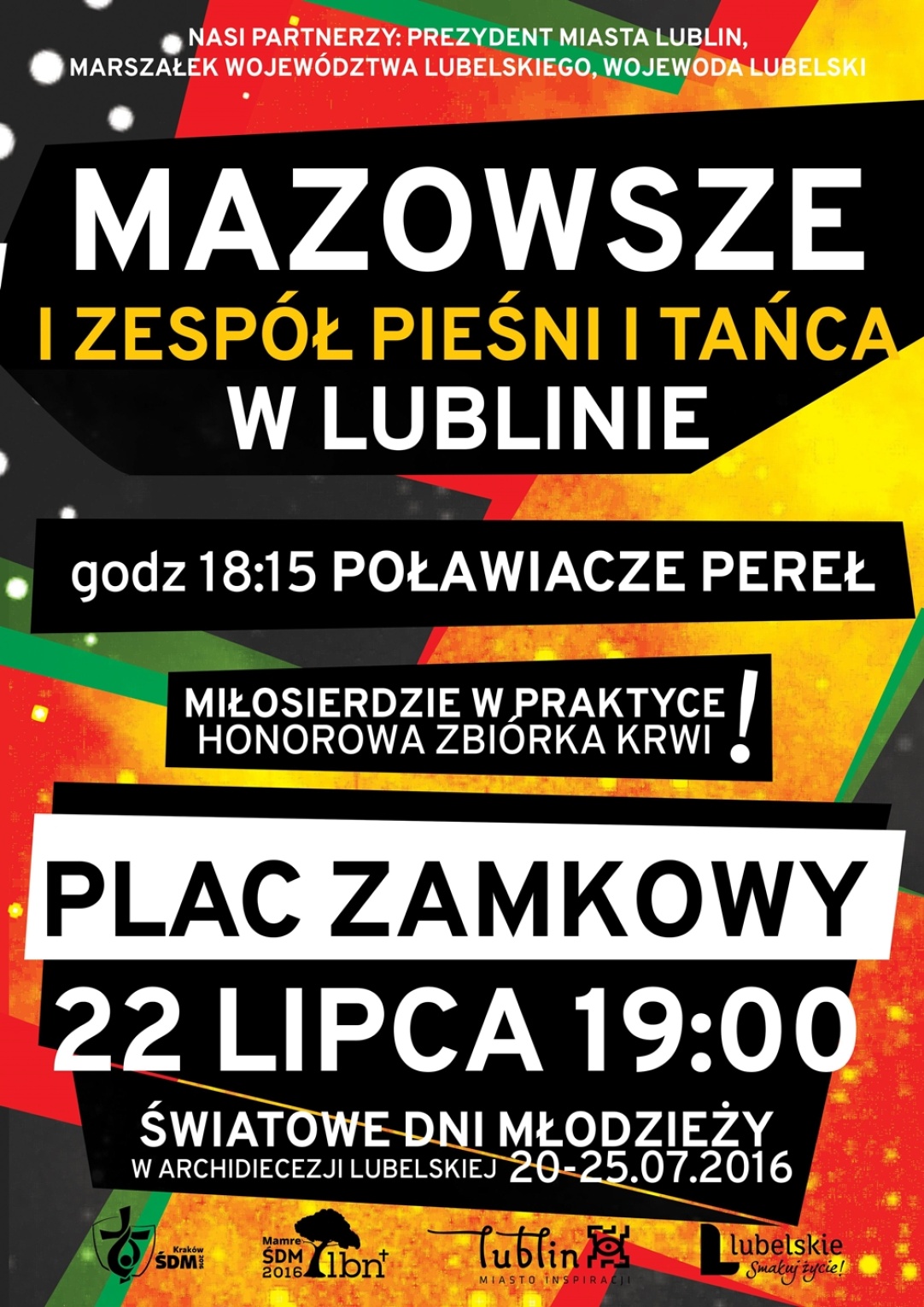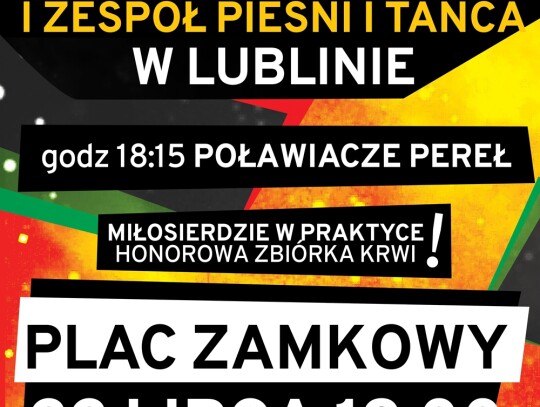 Piątek – 22 lipca – to dzień dla wszystkich mieszkańców Lublina i naszych gości. Na placu Zamkowym o godz. 19:00 rozpocznie się koncert zespołu „Mazowsze” i zespołu Pieśni i Tańca „Lublin” im. W. Kaniorowej. To okazja, do zaprezentowania historii Polski i regionu oraz prezentacja oferty kulturalnej miasta. Wcześniej, bo o 18:15 na scenie wystąpią lubelscy „kabareciarze”, którzy rozpoczną artystyczny program.