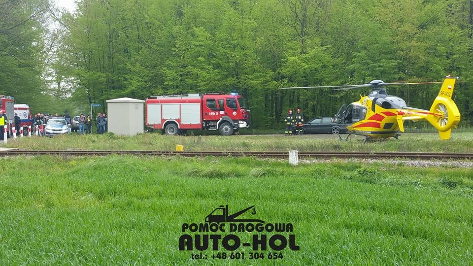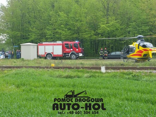 Kobieta z poważnymi obrażeniami ciała została przetransportowana śmigłowcem LPR do szpitala. Interweniowała również straż pożarna oraz pogotowie.