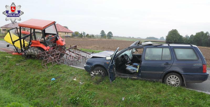 Siła uderzenia była tak duża, że obydwa pojazdy obróciły się na jezdni o 180°. Wstępnie mundurowi ustalili, że w ciągniku rolniczym włączone były światła, a kierujący osobówki najprawdopodobniej nie zauważył jadącego przed nim traktora.