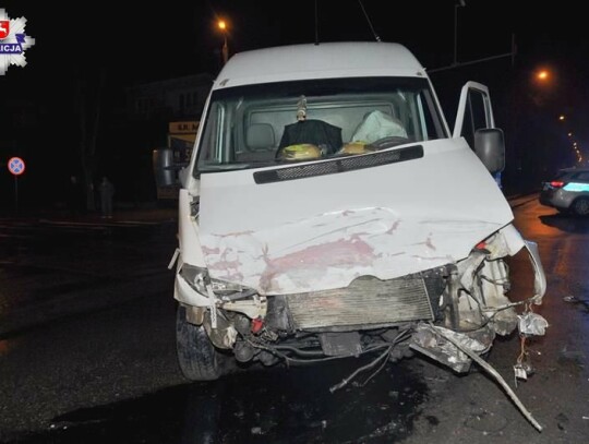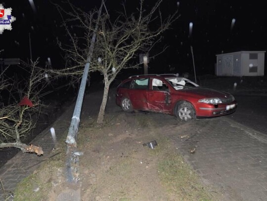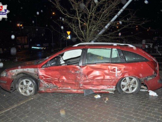 Policja informuje o zdarzeniu, które miało miejsce w Kraśniku: "Dzisiaj w nocy o godz. 3:15 w Kraśniku na skrzyżowaniu ulic Lubelska - Urzędowska doszło do groźnego zdarzenia drogowego. Na miejsce zostały skierowane służby ratownicze oraz policyjna grupa dochodzeniowa. Ze wstępnych policyjnych ustaleń i zabezpieczonych na miejscu śladów wynika, że jadący ulicą Urzędowską samochód osobowy wjechał na skrzyżowanie z ul. Lubelską łamiąc wszelkie zasady ostrożności. Doszło do zderzenia z jadącym drogą główną dostawczym busem. Osobowy renault po zderzeniu przejechał jeszcze kilkanaście metrów uderzył w drzewo i słup oświetleniowy. Auto zostało poważnie uszkodzone.