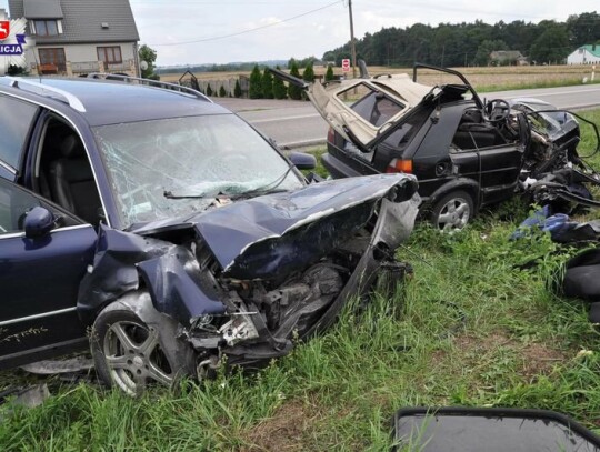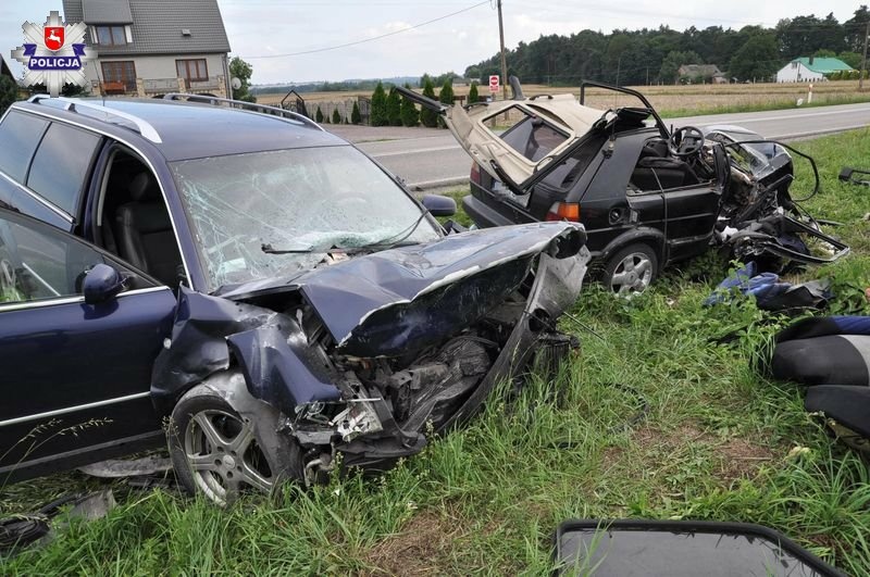 Jak informuje lubelska policja: "Krasnostawscy Policjanci wyjaśniają dokładne przyczyny zdarzenia drogowego, do którego doszło w środę przed godziną 15:00 w Krupem (gm. Krasnystaw). Na prostym odcinku drogi zderzyły się dwa Volkswageny. Wstępne ustalenia wskazują, iż kierujący Golfem 35-letni mieszkaniec Rejowca Fabrycznego omijał pojazdy, które zatrzymały się za skręcającym Oplem. Wykonując ten manewr kierowca Golfa, zjechał na przeciwległy pas ruchu, gdzie zderzył się czołowo z jadącym z naprzeciwka Passatem. Obydwa pojazdy wypadły z drogi. Kierowca Golfa i podróżująca z nim 30-letnia pasażerka zostali zakleszczeni w pojeździe i konieczne było użycie specjalistycznego sprzętu w celu ich uwolnienia. Obydwoje trafili do szpitala, przy czym kobieta, transportowana była śmigłowcem Lotniczego Pogotowia Ratunkowego. Obrażenia jakich doznali okazały się bardzo poważne.