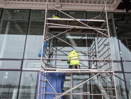 Wewnątrz dobudowanej części terminala wykonano ścianki działowe i posadzki, montowane są także sufity podwieszane. Po zakończeniu robót, rozpocznie się procedura odbiorów jakościowych obiektu. W dalszej kolejności nastąpi wyposażenie zarówno przestrzeni odprawy pasażerów, jak i części komercyjnej (kawiarni oraz dwóch sklepów wolnocłowych). W najbliższym czasie wykonawca, firma Strabag, rozpocznie także porządkowanie terenu budowy.