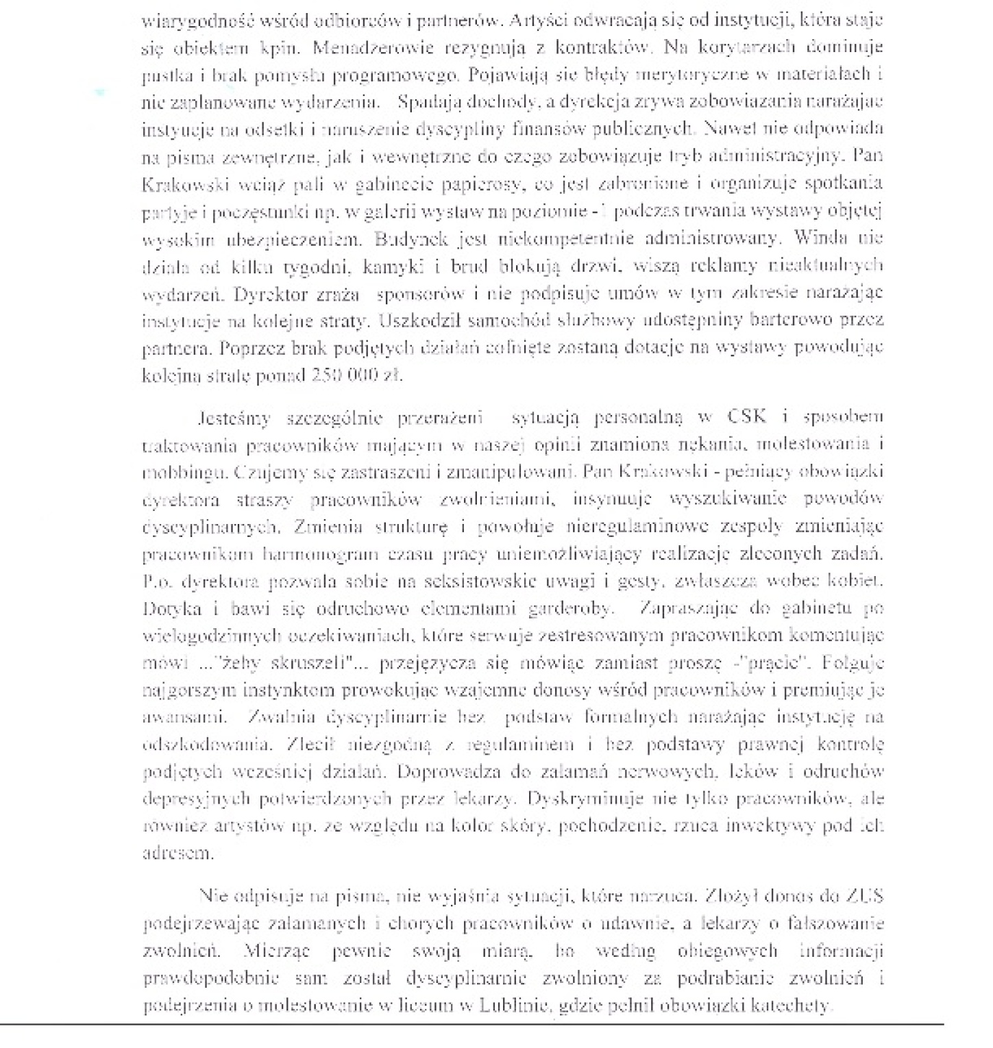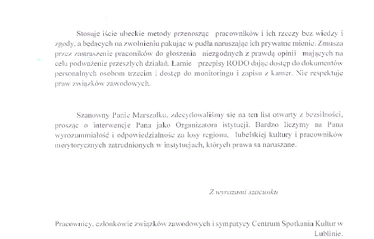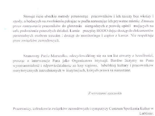 W liście pracownicy, będący u kresy wytrzymałości opisują sytuację panującą w placówce.
