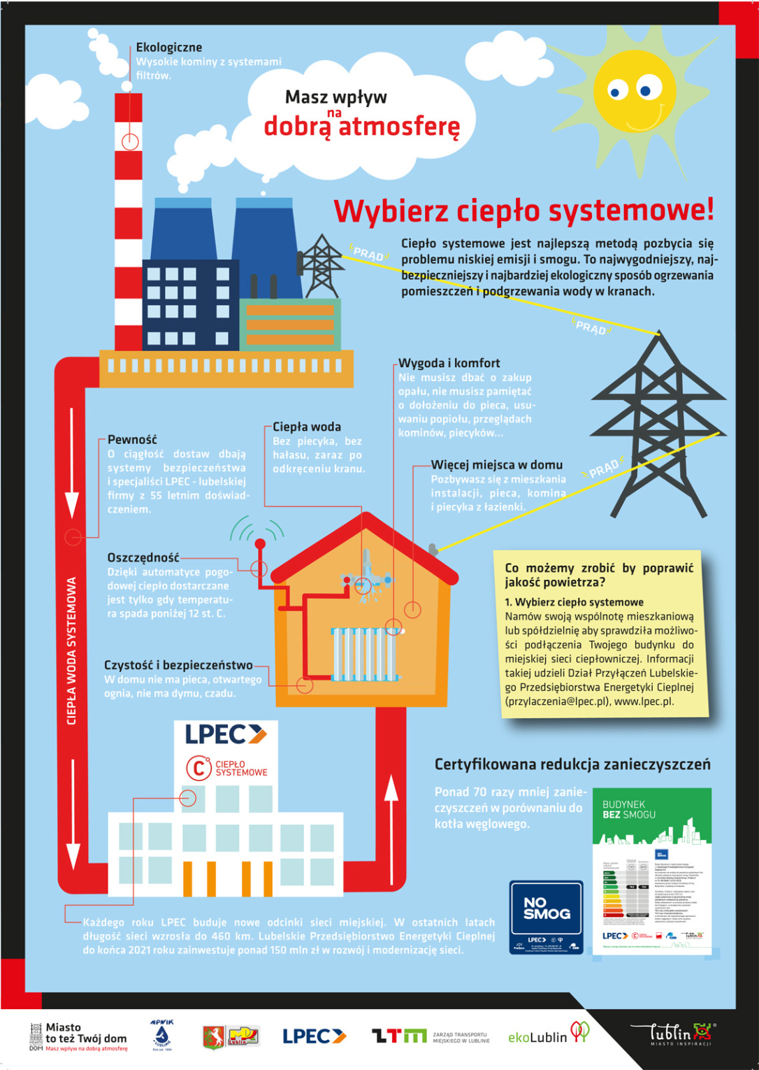 Miasto Lublin rusza z nową kampanią edukacyjną pod nazwą: „Miasto to też Twój dom – Masz wpływ na dobrą atmosferę”. Urząd Miasta, Spółki Miejskie oraz Straż Miejska integrują swoje działania na rzecz poprawy jakości powietrza podejmując edukację ekologiczną i proponując mieszkańcom Lublina możliwość skorzystania ze specjalnej oferty.