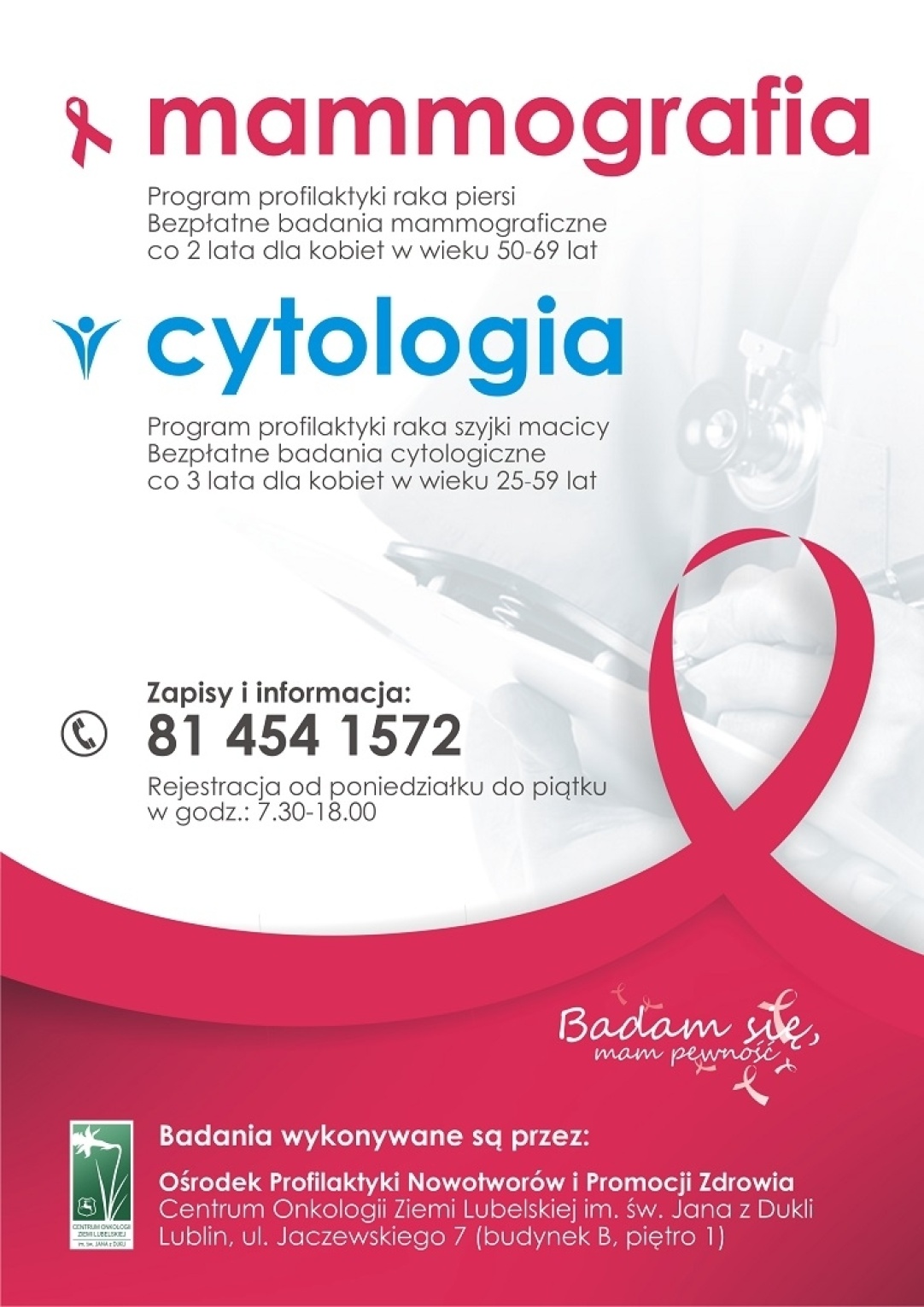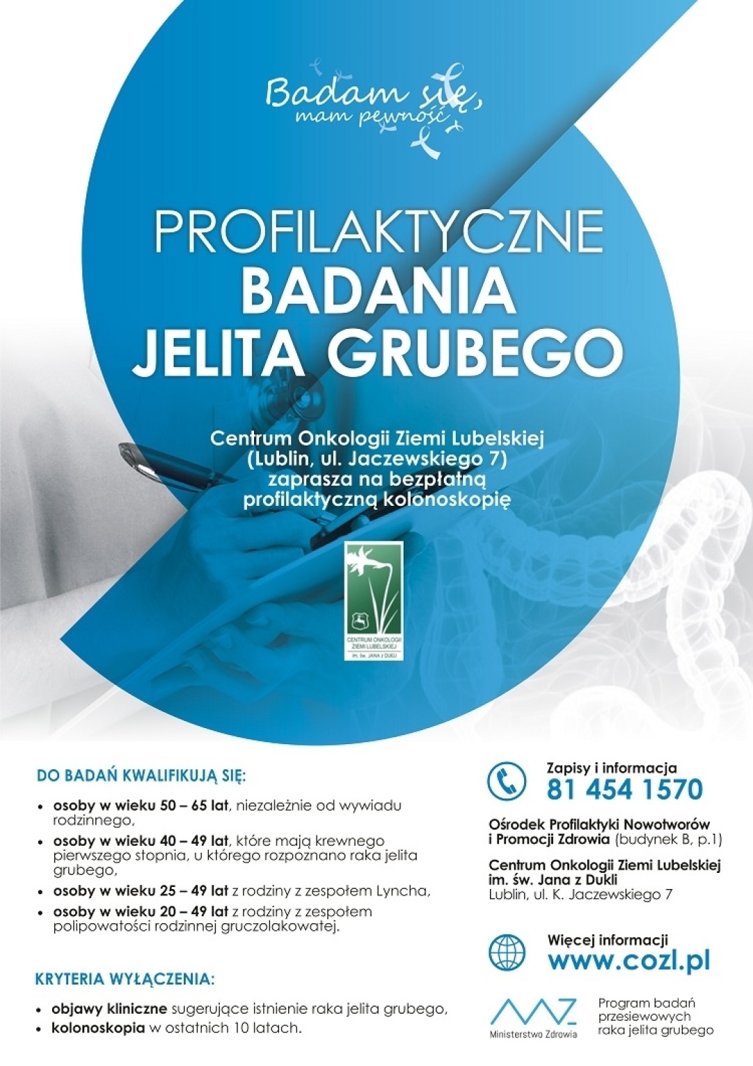 i Promocji Zdrowia Centrum Onkologii Ziemi Lubelskiej im. św. Jana z Dukli pod nr tel.: 81 454 1572 w godz. 8.00-18.00.