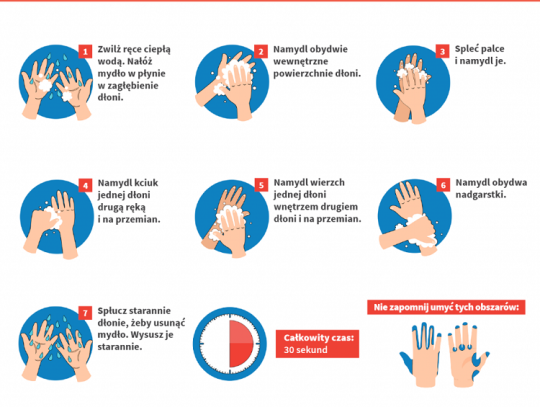Instrukcja jak poprawnie i skutecznie myć ręce znajduje się poniżej.